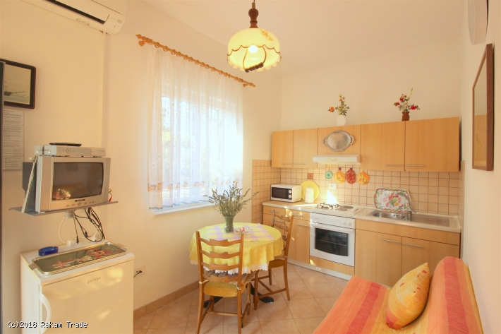 Die Ferienwohnung befindet sich in einer ruhigen und grünen Umgebung, ca. 650 m vom Strand entfernt. Erdgeschoss, ca. 25 m2. Es verfügt über ein Schlafzimmer mit einem Doppelbett, ein Badezimmer mit einer Dusche und eine Küchenzeile mit einem Schlafsofa für eine Person. Zugang zum Garten mit Tisch und Stühlen. Klimaanlage, Sat-TV, Internetzugang (Wi-Fi). Parkplatz im Hof.