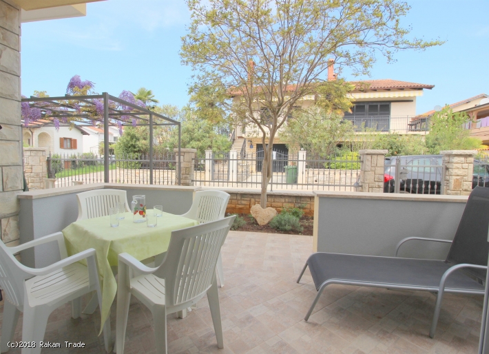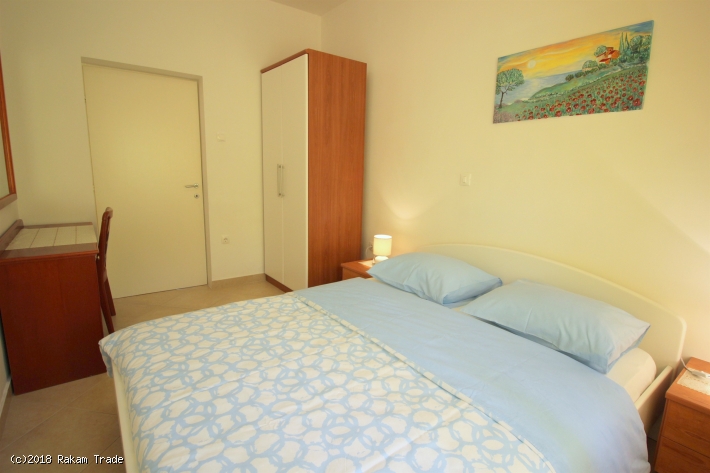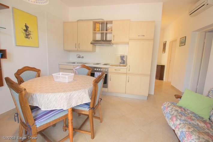 Grüne Wohngegend ca. 300 m vom Strand entfernt. Ferienwohnung am Erdgeschoss, ca. 58 m2 mit Terrasse. Mit zwei Schlafzimmern, einem Doppelzimmer und einem Einzelbett. Ausgestattete Küche, Essecke, Sofa und Sat-TV. Badezimmer mit Dusche. Klimaanlage und WLAN. Barbecue zum gemeinsam nutzung mit anderen Gästen. Parkplatz vor dem Haus.
